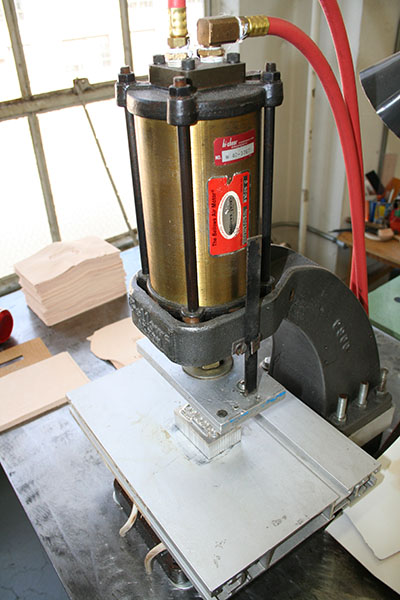 This machine has a "die" attachment, which is used to emboss the leather, essentially branding the leather with a logo.